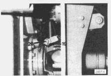 15. Remove the cotter pin (19) and the clevis pin (20) from the differential lock actuator.