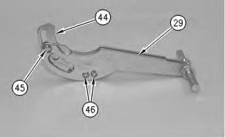 16. Remove retaining rings (45) and (46). Use a hammer and a punch to remove the pins. Remove cam (44) from suspension arm (29) .