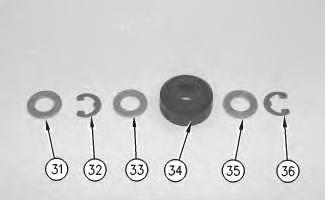 11. Remove roller assembly (30) from each side of suspension arm (29). Remove retaining rings (32) and (36), washers (31), (33) and (35), and rollers (34) .