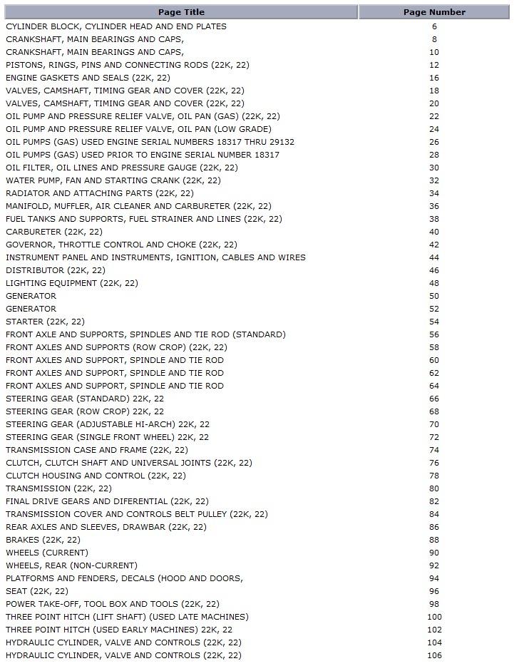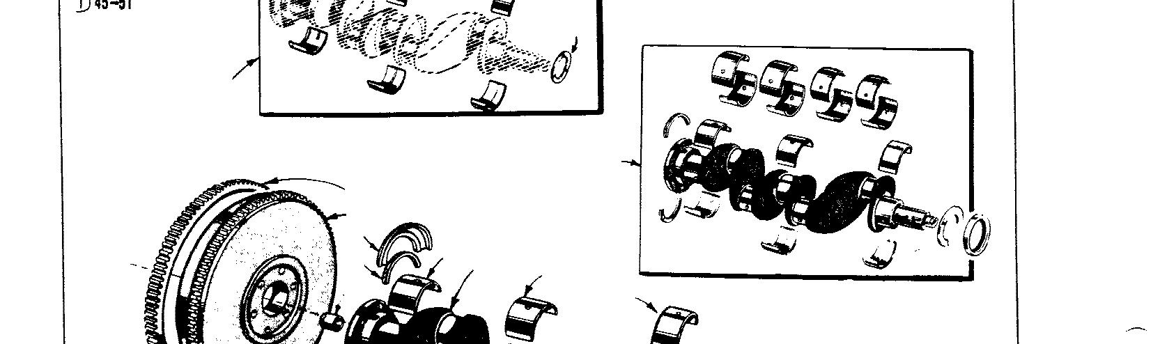 1840477M911CrankshaftAndBearingKit(Incl.1-32655ACrankshaft,1-840473M91MainBearingKit,1-840087M91 Conn.RodBeaingKit,1-15287AOilSeal,1-15288ADustSealAnd2-1001408M1OilSeals) 232655A1CrankshaftAssembly(Order840477M91) 315280A1Bushing,CrankshaftPilot(5/8x13/16x3/4"") 415285A2Washer,Thrust,(2-9/32x3-1/16x3/32") 515240A3Pin,DowelThrustWasherToBlock 615281A1Plate,Thrust 715283AARShim,ThrustPlate(.002") 15284AARShim,ThrustPlate(.004") 815286A1Thrower,Oil 932656A1Gear,CrankshaftTiming 1033228A1Pulley,FanDrive 1112501X2Key(#15Woodruff) 1215291A1Plug,Keyway(Cork) 1315289A1Jaw,Starting 1415290A1Washer91-3/8x2x1/4") 181000440M911MainBearingAssembly,Front(Incl.UpperAndLowerShells)(See840473M91) 19760353M911MainBearingAssembly,Center(Incl.UpperAndLowerShells)(See840473M91) 20760354M911MainBearingAssembly,Rear(Incl.UpperAndLowerShells)(See840473M91) 211004860M11Cap,MainBeaing,Front 221004863M11Cap,MainBeaing,Center 231004862M11Cap,MainBeaing,Rear 241004861M14Bolt(1/2x2-5/8"NC,Hex.,Drilled) 2515235A2Bolt(1/2x3-1/4"NC,Hex.,Drilled) 2615233A6Washer(1/2"Flat,Special) 2715234A2Wire,Lock(#19-10") 2815236A1Wire,Lock(#19-12") 3232674A1FillerBlock,Front 336226A1FillerBlock,Rear 3432682A1Guard,Oil 351001408M12Seal,Oil(JuteYarn) 3615227X2Bolt,RearFillerBlock(1/4x5/8"NC,Hex.) 3722110X2Screw,FrontFillerBlock(5/16x7/8"NC,SocketHd.) 3822115X2Screw,RearFillerBlock(5/16x2-5/8"NC,SocketHd.) 392760X2Washer(1/4"Lock) 4015492X4Washer(5/16"Int.Skpf.) 4532652A1FlywheelAssembly 4632654A1StarterRingGear 4715279A6Bolt,FlywheelToCrankshaft(3/8x1-3/16"NF,Special) 4812177X6Nut(3/8"NF,Hex.) 4915200X6Washer(3/8"Int.Skpf.) 52840473M911BearingSet,MainStd. 5315285A1Washer,Thrust,(2-9/32x3-1/16x3/32") 541000440M911BearingAssembly,FrontMainStd. 55760353M911BearingAssembly,CenterMainStd. 56760354M911BearingAssembly,RearMainStd. 52840474M911BearingSet,Main,-.002" 5315285A1Washer,Thrust,(2-9/32x3-1/16x3/32") 541000441M911BearingAssembly,FrontMain,-.002" 5534407A1BearingAssembly,CenterMain,-.002" 5634412A1BearingAssembly,RearMain,-.002" 52840475M911BearingSet,Main,-.020" 5315285A1Washer,Thrust,(2-9/32x3-1/16x3/32") 541000442M911BearingAssembly,FrontMain,-.020" 5534411A1BearingAssembly,CenterMain,-.020" 5634416A1BearingAssembly,RearMain,-.020" 52840476M911BearingSet,Main,-.040" 5315285A1Washer,Thrust,(2-9/32x3-1/16x3/32") 541000443M911BearingAssembly,FrontMain,-.040" 5535407A1BearingAssembly,CenterMain,-.40" 5635408A1BearingAssembly,RearMain,-.040" 601004126M1AR(A)Gear,CrankshaftTiming(-.001")