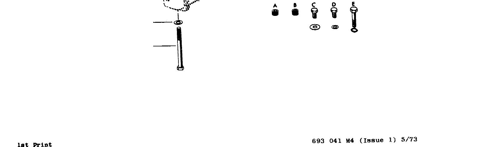 501002044M12Washer(17/64x1/2x1/16") 51355564X11Nut(1/4"NC,Hex.) 5211191X6Bolt(3/8x1-1/8"NC,Hex.) 15410X1Bolt(3/8x1-5/8"NC,Hex.)