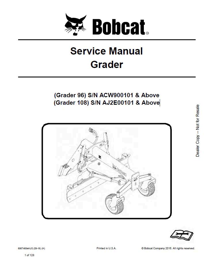 Comprehensive service manual for Bobcat 96 and 108 graders in PDF format. This technical documentation provides detailed repair procedures, maintenance schedules, troubleshooting guides, and component specifications essential for equipment operators and technicians. Access complete schematics, torque specifications, and step-by-step instructions for all service operations. Ideal for workshop reference and field maintenance. Digital format ensures convenient access on any device.