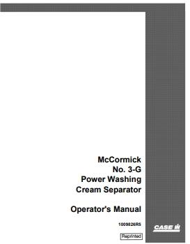 Case IH Tractor Power Washing Cream Separator McCormick 3-G 3g operator manual (part number 1009826R5, document 94001030) in PDF format. This comprehensive technical guide provides detailed instructions for operating, maintaining, and troubleshooting your cream separator equipment. Essential reference material for operators and technicians managing Case IH agricultural machinery. Digital download ensures convenient access to critical operational procedures and safety protocols.