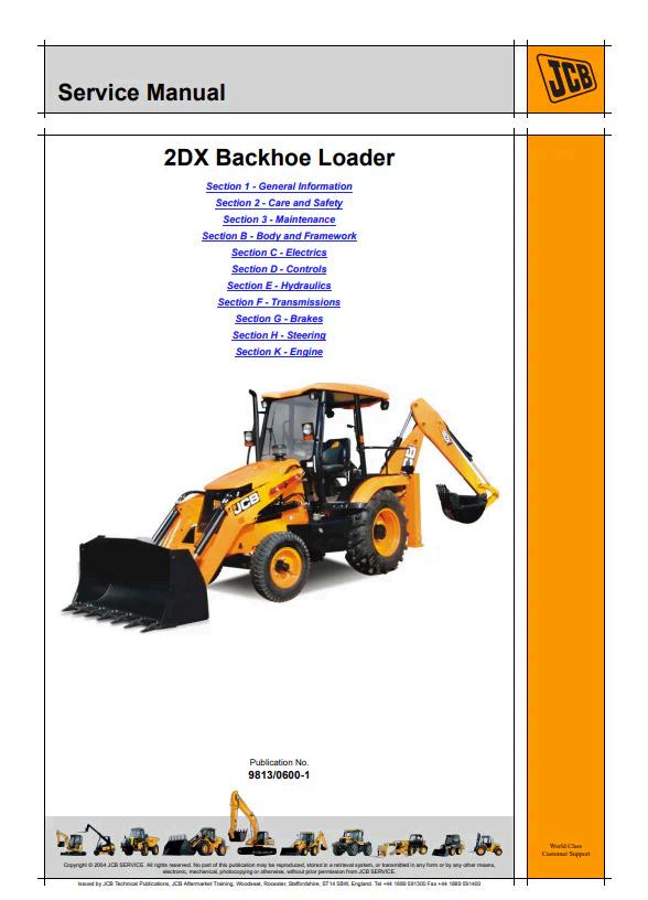 JCB Backhoe Loader 2DX Service Manual 9813/0600-1 PDF Comprehensive service documentation for the JCB Backhoe Loader 2DX model, reference number 9813/0600-1. This technical manual provides detailed maintenance procedures, diagnostic protocols, and repair specifications essential for equipment operators and service technicians. Access critical information on hydraulic systems, engine components, transmission assemblies, and electrical configurations. Ideal for scheduled maintenance planning, troubleshooting mechanical issues, and ensuring optimal equipment performance. Digital PDF format enables quick reference and convenient documentation storage for workshop environments.