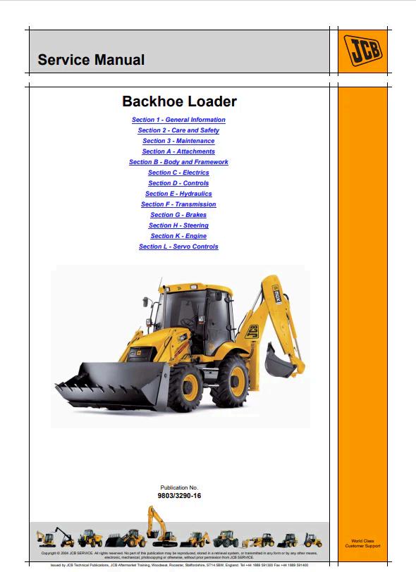 JCB Backhoe Loader 3C, 3CX, 4CX Service Manual 9803/3290-16 PDF Comprehensive service documentation for JCB backhoe loader models 3C, 3CX, and 4CX. This official manual (reference 9803/3290-16) provides detailed technical specifications, maintenance procedures, troubleshooting guides, and repair instructions. Essential resource for technicians, operators, and equipment managers requiring authoritative guidance on machine operation, preventive maintenance, and component servicing. Digital PDF format enables quick access to critical information for field and workshop reference. Covers hydraulic systems, engine specifications, electrical components, and mechanical assemblies specific to these versatile construction machines.
