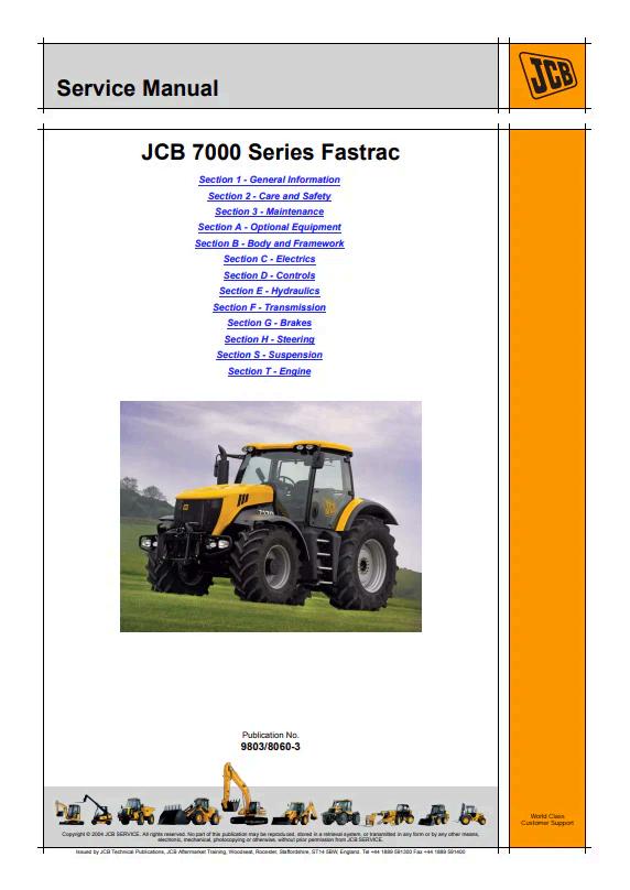 JCB Fastrac 7000 Series Service Manual 9803/8060-3 PDF – Comprehensive technical documentation for maintenance, diagnostics, and repair procedures. This official service manual covers engine systems, hydraulics, transmission, electrical components, and operational specifications. Essential reference for technicians, mechanics, and equipment operators requiring detailed troubleshooting guidance and component specifications. Ensures proper maintenance protocols and extends equipment longevity. Digital PDF format for immediate access and convenient reference on-site or in the workshop.