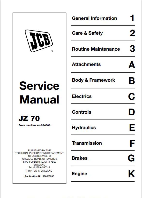 JCB JZ 70 Service Manual 9803/6030 PDF Comprehensive service documentation for the JCB JZ 70 wheeled loader, reference 9803/6030. This manual provides detailed technical specifications, maintenance procedures, troubleshooting guides, and component diagrams essential for qualified technicians and operators. Covers engine systems, hydraulics, transmission, electrical components, and routine service intervals. Ideal for workshop professionals managing fleet maintenance and repairs. Digital PDF format ensures convenient access to critical service information whenever needed.
