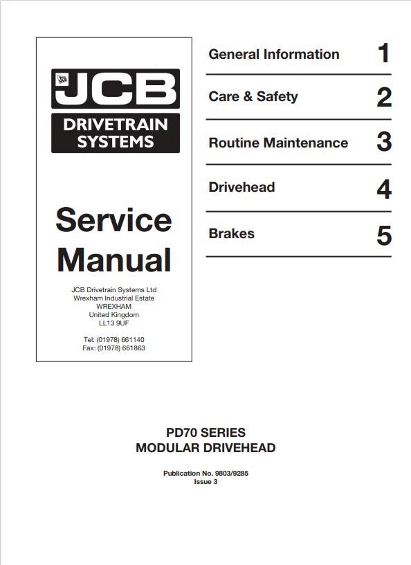 JCB PD70 Series Modular Drivehead Service Manual 9803/9285 PDF Comprehensive technical documentation for the JCB PD70 Series modular drivehead system. This service manual provides detailed specifications, maintenance procedures, troubleshooting protocols, and component assembly instructions essential for technicians and operators. Reference numbers 9803/9285 ensure accurate identification and compatibility. Digital PDF format enables quick access to critical service information, reducing downtime and supporting efficient equipment maintenance. Ideal for authorized service centers and equipment managers requiring authoritative technical guidance.