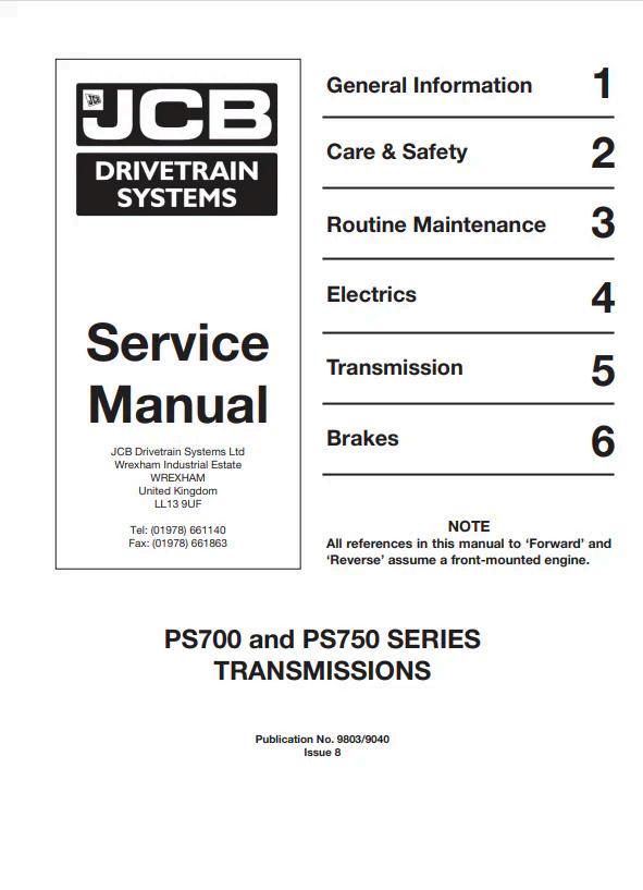 JCB PS700 and PS750 Series Transmission Service Manual 9803/9040 PDF Comprehensive service documentation for JCB PS700 and PS750 transmission systems. This manual (reference 9803/9040) provides detailed technical specifications, diagnostic procedures, and repair protocols essential for transmission maintenance and overhaul operations. Designed for certified technicians and service professionals, it includes component identification, torque specifications, fluid requirements, and troubleshooting guidance. Digital PDF format ensures immediate access to critical service information for efficient equipment servicing and downtime reduction.