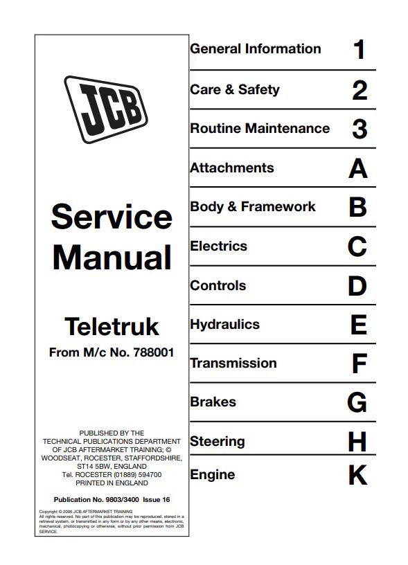 Comprehensive service manual for JCB Teletruk 3.0D 4×4 and 3.5D 4×4 models (reference 9803/3400). This detailed PDF guide covers maintenance procedures, troubleshooting, component specifications, and repair protocols essential for technicians and operators. Access critical information on engine systems, hydraulics, electrical components, and transmission maintenance. Ideal for workshop professionals, fleet managers, and equipment owners requiring authoritative technical documentation to ensure optimal performance and longevity of your Teletruk investment.