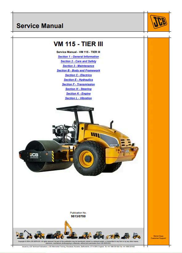 JCB VM 115 TIER III Service Manual 9813/0700 provides comprehensive technical documentation for maintenance, repair, and troubleshooting of the VM 115 vibratory roller. This official manual covers engine specifications, hydraulic systems, electrical components, and operational procedures. Essential reference for technicians, operators, and service centers requiring detailed guidance on equipment servicing and diagnostics. PDF format ensures convenient access across devices for field and workshop use.