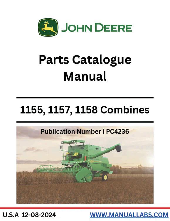 John Deere 1155, 1157, and 1158 Combine Parts Catalog Manual PC4236 provides comprehensive technical documentation for identifying, ordering, and servicing components across these three combine models. This PDF reference guide delivers detailed parts breakdowns, assembly diagrams, and part numbers essential for maintenance, repairs, and component replacement. Ideal for operators, technicians, and parts departments requiring accurate specifications and cross-reference information for efficient equipment management and downtime reduction.