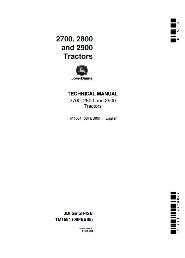 John Deere 2700, 2800 and 2900 Tractor Technical Manual TM1564 PDF Comprehensive technical reference for John Deere 2700, 2800, and 2900 series tractors. This official TM1564 manual delivers detailed specifications, maintenance procedures, troubleshooting guidance, and repair protocols essential for operators and technicians. Access critical information on engine systems, hydraulics, transmission, electrical components, and more. Ideal for preventive maintenance, diagnosing issues, and performing authorized service work. Digital PDF format ensures convenient access on any device whenever you need it.