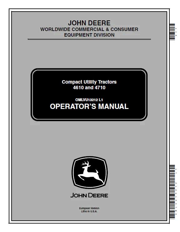 John Deere 4610 and 4710 Compact Utility Tractors Operator Manual OMLVU13212 PDF Master the operation and maintenance of your John Deere 4610 or 4710 compact utility tractor with this comprehensive official operator manual. Document OMLVU13212 provides detailed guidance on equipment controls, safe operating procedures, routine maintenance schedules, and troubleshooting protocols. Essential reference material for owners, operators, and technicians seeking authoritative information on these versatile mid-range tractors. Digital PDF format ensures convenient access to critical documentation whenever needed.
