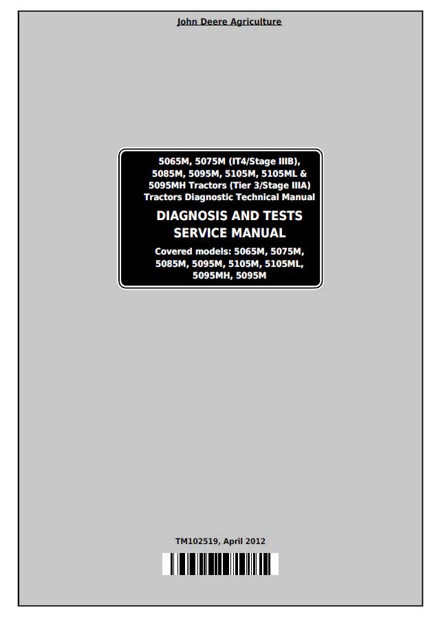 John Deere 5065M through 5105MH Tractor Diagnosis and Test Service Manual (TM102519) provides comprehensive technical guidance for diagnosing and testing these mid-range utility tractor models. This professional-grade manual delivers detailed procedures, specifications, and troubleshooting protocols essential for service technicians and equipment operators. Covers all diagnostic systems, electrical components, hydraulics, and engine performance testing. Ideal for authorized dealers, independent repair shops, and fleet maintenance operations requiring factory-standard documentation for efficient equipment servicing and problem resolution.