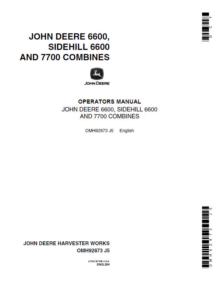 John Deere 6600, Sidehill 6600, and 7700 Combines Operator Manual OMH92873 provides comprehensive guidance for equipment operation, maintenance, and troubleshooting. This essential reference document covers all critical systems, safety procedures, and performance specifications for these combine models. Ideal for operators, technicians, and fleet managers seeking reliable technical documentation. Digital PDF format ensures convenient access and searchability for quick reference in the field or workshop.