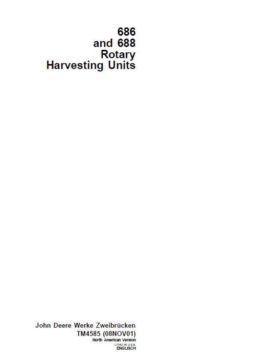 John Deere 686 and 688 Rotary Harvesting Units Technical Manual TM4585 PDF Comprehensive technical documentation for John Deere 686 and 688 rotary harvesting units. This official TM4585 manual delivers detailed specifications, operational procedures, maintenance protocols, and troubleshooting guidance essential for equipment operators and technicians. Access critical information on system components, performance optimization, and service requirements in a convenient digital format. Ideal for fleet managers, service centers, and equipment owners requiring authoritative reference material for reliable harvester operation and upkeep.