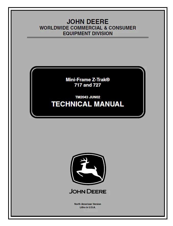 John Deere 717 and 727 Mini-Frame Z-Trak Technical Manual TM2043 provides comprehensive service and repair guidance for these compact zero-turn mowers. This official documentation covers engine specifications, hydraulic systems, electrical components, and troubleshooting procedures essential for technicians and operators. Ideal for maintenance planning, diagnostics, and parts identification. Digital PDF format ensures immediate access to critical technical data whenever needed.