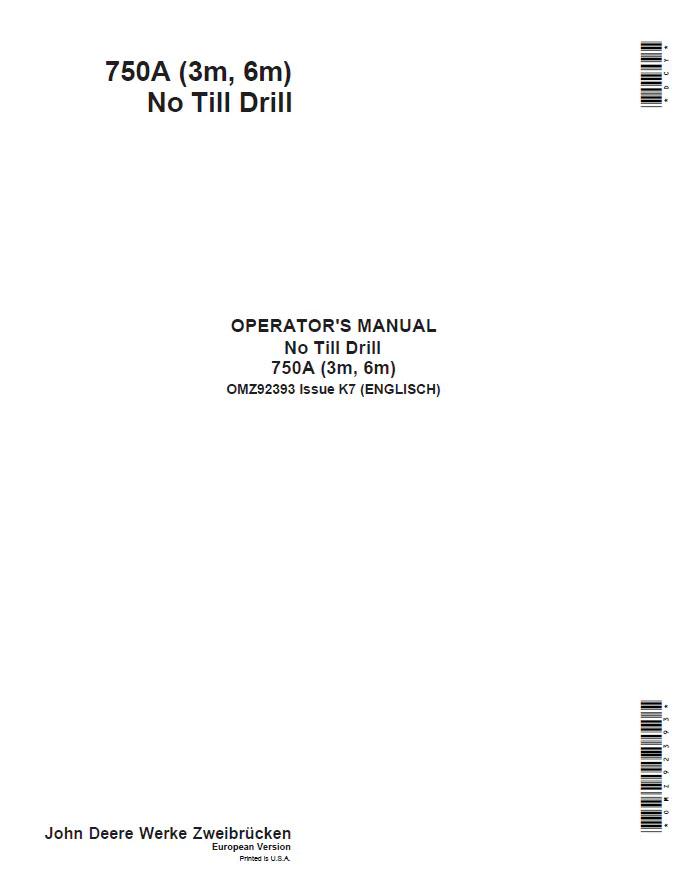 John Deere 750A No Till Drill Operator Manual OMZ92393 provides comprehensive guidance for both 3-meter and 6-meter configurations. This essential PDF resource covers equipment operation, maintenance procedures, troubleshooting, and safety protocols. Ideal for operators, technicians, and fleet managers seeking reliable reference documentation. Access critical specifications, adjustment procedures, and best practices to maximize drill performance and longevity. Digital format ensures convenient availability in the field or workshop.