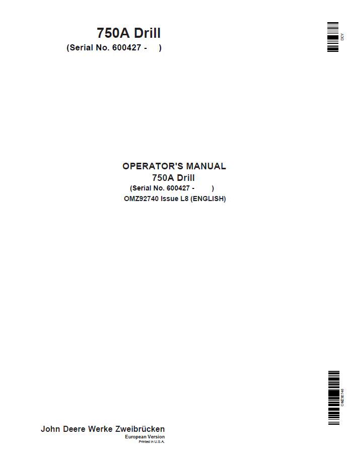 John Deere 750A Drill Operator Manual OMZ92740 provides comprehensive guidance for safe and efficient equipment operation. This official documentation covers machine specifications, controls, maintenance schedules, and troubleshooting procedures essential for operators and technicians. The manual ensures compliance with manufacturer standards and helps maximize equipment performance and longevity. Ideal for fleet managers, operators, and service personnel requiring authoritative reference material for the 750A drill system.