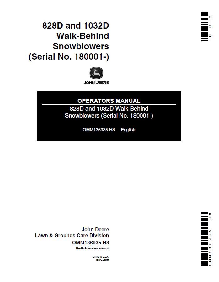 John Deere 828D and 1032D Walk-Behind Snowblowers Operator Manual OMM136935 provides comprehensive guidance for operating, maintaining, and troubleshooting these reliable snow removal machines. This official PDF manual covers essential procedures including engine startup, chute adjustment, seasonal storage, and routine maintenance schedules. Ideal for equipment owners and operators seeking authoritative technical documentation to maximize performance and ensure safe operation of their John Deere snowblower investment.