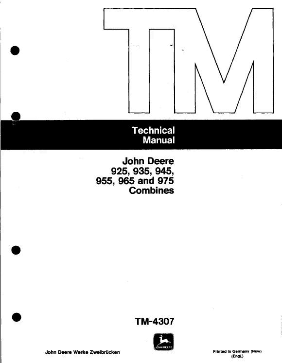 John Deere 925, 935, 945, 955, 965 and 975 Combines Technical Manual TM-4307 PDF Comprehensive technical reference covering six John Deere combine models. This manual delivers detailed specifications, maintenance procedures, troubleshooting guidance, and component diagrams essential for operators and technicians. Access critical information on engine systems, hydraulics, electrical components, and mechanical assemblies. Ideal for service departments, equipment managers, and experienced operators requiring authoritative documentation. Digital PDF format ensures convenient access across devices and job sites.