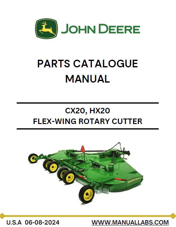 ohn Deere CX20 and HX20Flex-Wing Rotary Cutter Parts Catalog Manual PC2877 provides comprehensive technical documentation for equipment maintenance and repair. This PDF manual delivers detailed parts diagrams, component specifications, and assembly references essential for operators and technicians. Access complete part numbers, schematics, and identification guides to streamline ordering and troubleshooting. Ideal for fleet managers, service centers, and equipment owners requiring reliable reference material for the CX20 and HX20 models.
