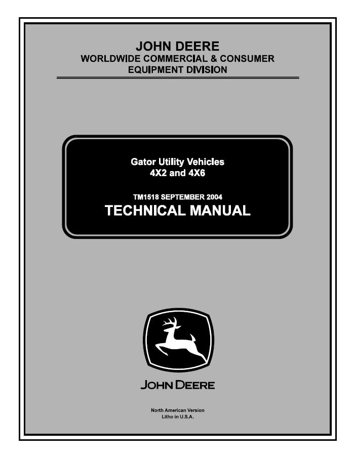 John Deere Gator Utility Vehicles 4X2 and 4X6 Technical Manual TM1518 provides comprehensive service and repair guidance for operators and technicians. This official documentation covers diagnostics, maintenance procedures, component specifications, and troubleshooting protocols essential for optimal equipment performance. Ideal for fleet managers, service centers, and equipment owners requiring authoritative technical reference material. Digital PDF format ensures immediate access to critical information for field operations and workshop environments.