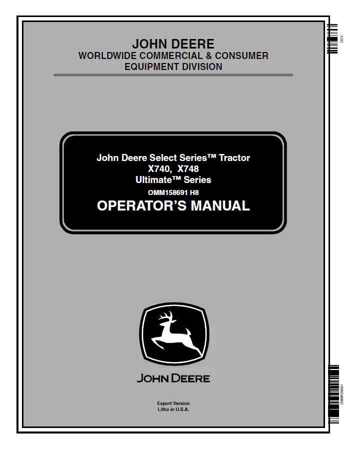 John Deere Select Series™ Tractor X740, X748 Ultimate™ Series Operator Manual OMM158691 provides comprehensive guidance for equipment operation, maintenance, and troubleshooting. This official PDF manual covers essential procedures, safety protocols, and specifications for optimal performance. Ideal for operators, technicians, and fleet managers seeking reliable reference documentation. Ensure proper equipment handling and longevity with manufacturer-backed instructions and technical data.