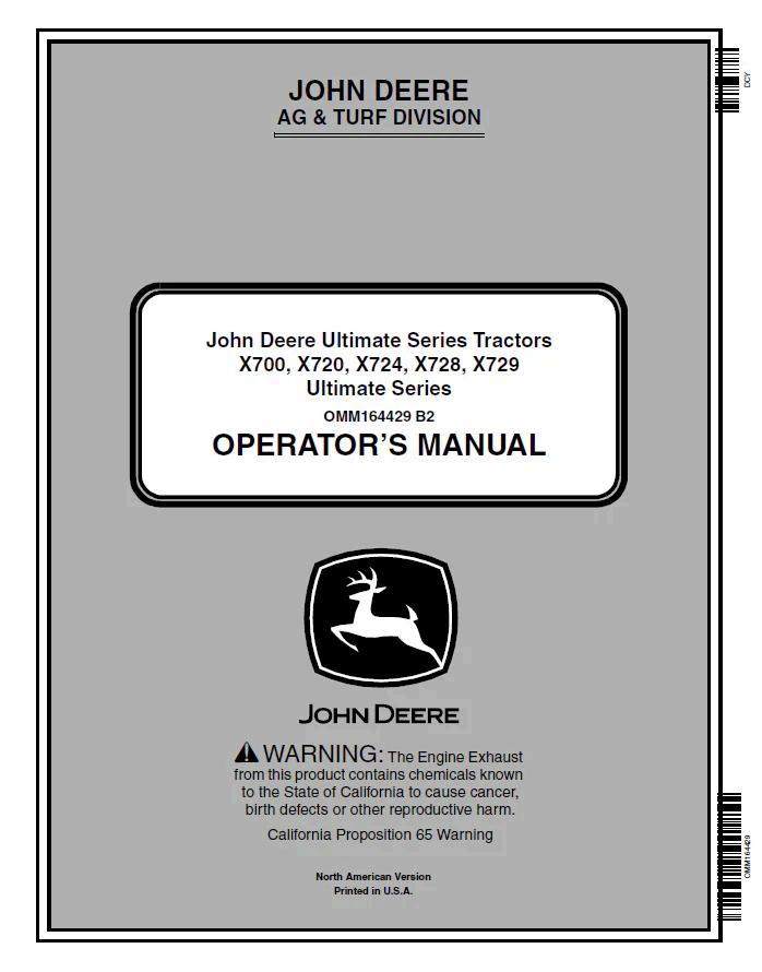 John Deere X-Series Operator Manual OMM164429 covers the X700, X720, X724, X728, and X729 tractor models. This comprehensive PDF guide provides essential operating procedures, maintenance schedules, safety protocols, and troubleshooting information for equipment owners and operators. Ideal for fleet managers, technicians, and individual operators seeking reliable reference documentation. Digital format ensures immediate access and easy searchability for quick problem-solving and routine upkeep guidance.