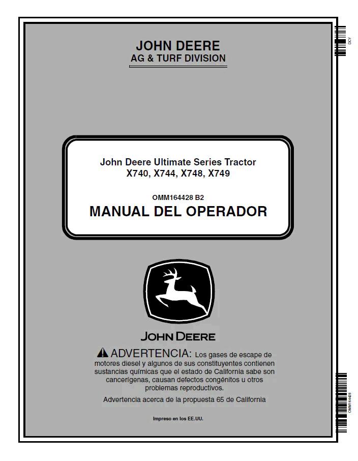John Deere Ultimate Series Tractor X740, X744, X748, X749 Operator Manual OMM164428 PDF Comprehensive operator manual for John Deere Ultimate Series lawn and garden tractors (models X740, X744, X748, X749). This official OMM164428 documentation provides detailed guidance on equipment operation, maintenance schedules, safety procedures, and troubleshooting. Essential reference for owners and operators seeking proper machine handling, service intervals, and performance optimization. Digital PDF format ensures convenient access to critical information whenever needed.