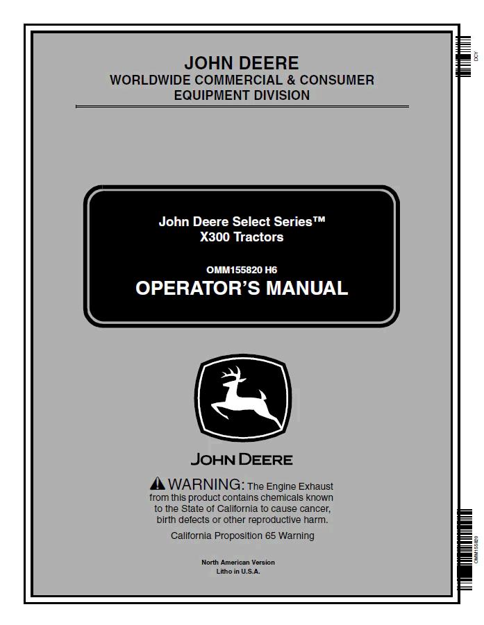 John Deere X300 Select Series™ Tractors Operator Manual OMM155820 provides comprehensive guidance for safe and efficient equipment operation. This official documentation covers essential topics including machine setup, routine maintenance procedures, troubleshooting protocols, and operational best practices. Designed for both new and experienced operators, the manual ensures you maximize performance while adhering to manufacturer specifications. Digital PDF format allows instant access across devices for convenient reference in the field or workshop.