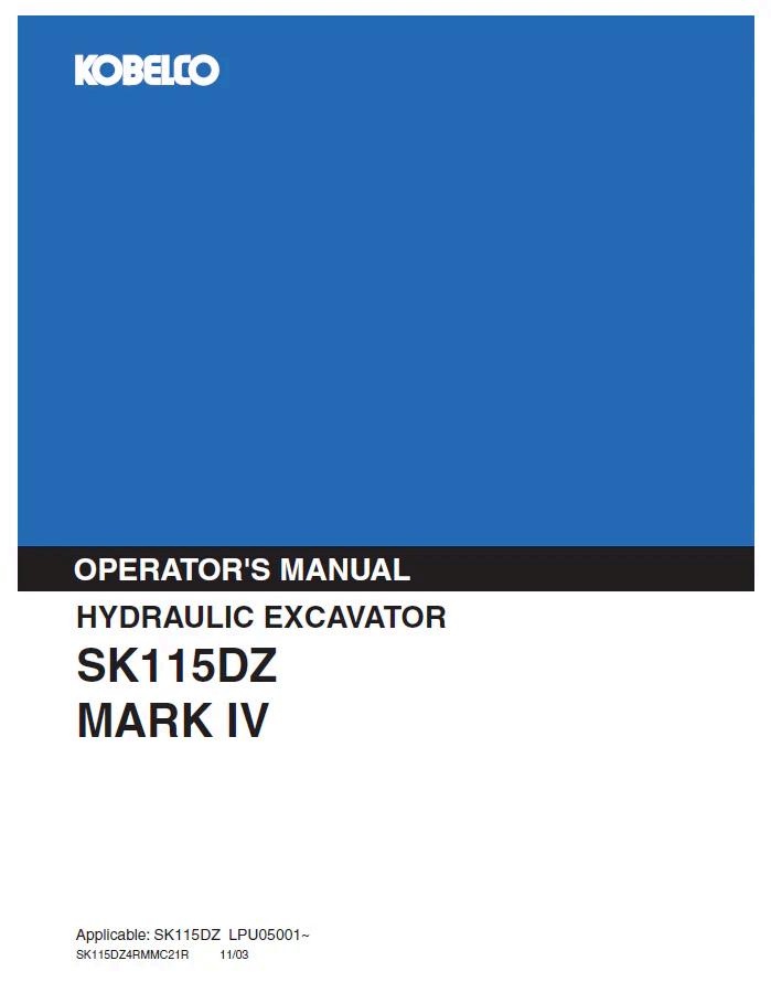 Kobelco SK115DZ MARK IV Hydraulic Excavator Operator Manual PDF – Complete technical documentation for safe operation, maintenance, and troubleshooting of this mid-size excavator. This comprehensive manual covers machine specifications, control systems, hydraulic functions, routine service intervals, and emergency procedures. Essential reference for operators, technicians, and fleet managers seeking reliable guidance on equipment performance and longevity. Digital PDF format ensures instant access to critical information anytime, anywhere.