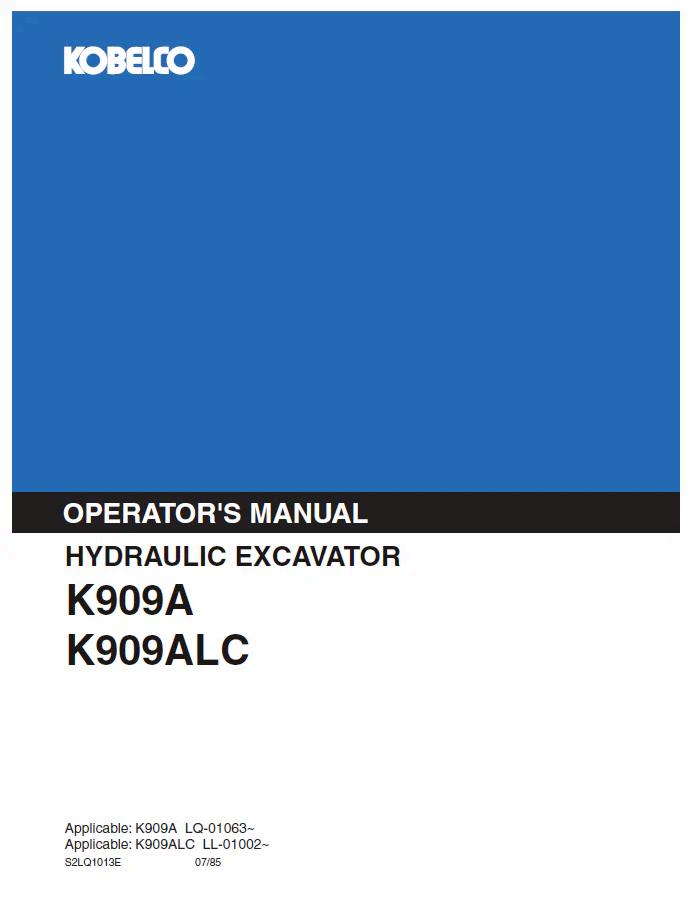 Comprehensive operator manual for Kobelco K909A and K909ALC hydraulic excavators. This essential PDF guide covers machine specifications, operation procedures, maintenance schedules, safety protocols, and troubleshooting. Designed for equipment operators and maintenance technicians, it provides detailed instructions for optimal performance and longevity. Ensure proper equipment handling and compliance with manufacturer standards. Digital format allows instant access across devices for on-site reference and training purposes.