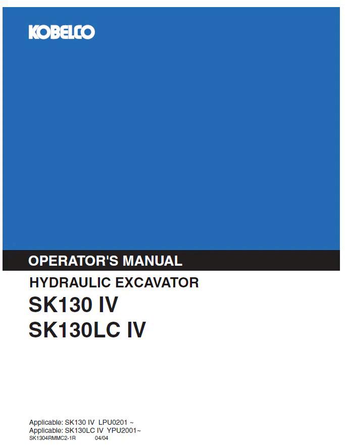 Comprehensive operator manual for Kobelco SK130 IV and SK130LC IV hydraulic excavators. This detailed PDF guide covers machine specifications, operation procedures, maintenance schedules, safety protocols, and troubleshooting. Essential reference for equipment operators, technicians, and fleet managers seeking reliable documentation on these mid-sized excavator models. Ensures proper equipment handling, maximizes operational efficiency, and supports compliance with manufacturer guidelines. Digital format allows instant access across devices for on-site and office use.