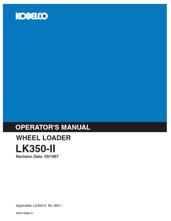 Kobelco Machine Wheel Loader LK350-II Operator Manual PDF