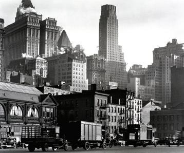 Clockwise, Kenji Nakahashi (1947-2017), Trimming, 1987, chromogenic color print. Anonymous gift in memory of Kenji Nakahashi; Berenice Abbott, (1898-1991) West Street, 1936, gelatin silver print. Gift of Mr. Morton Brozinsky; Edward Steichen (1879-1973), Moonlight: The Pond, 1906, rotogravure. Museum Purchase.