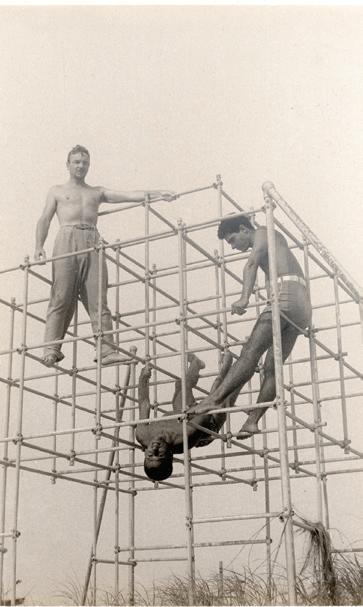 A highlight of the show is the inclusion of six photographs by the artist collective PaJaMa, composed of Paul Cadmus, Jared French, and Margaret French. PaJaMa (an acronym of their first names) was formed in 1937, during trips the trio made to the beaches of Fire Island in Long Island and their studios in New York City. Their photographs draw on themes of surrealism, often featuring themselves as well as people from their close circle of artists, writers, and dancers. They created intimate black-andwhite images that captured the spirit of artistic and personal freedom that came