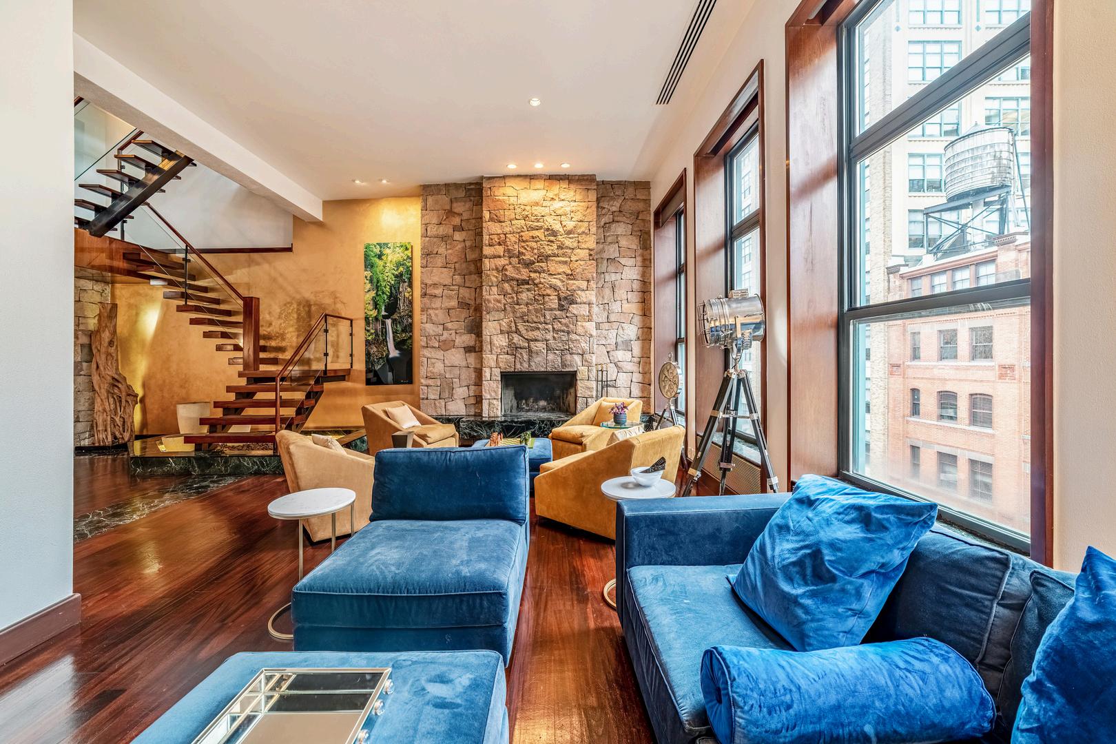 La grande cuisine de chef séparée est équipée d'appareils haut de gamme et possède des portes françaises menant à l'une des quatre terrasses privées que cette demeure a à offrir Montez l'escalier sur mesure et découvrez deux chambres spacieuses, également dotées de balcons privés donnant sur le centre-ville de Manhattan