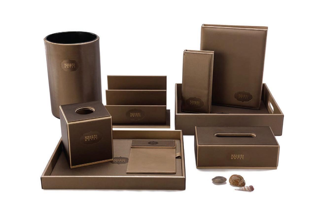 They specialise is hotel in-room accessories. On this page are images of some of the items they have produced for our Irish hotel clients. Recently they have launched a Contemporary Range. This range is high quality, stylish and sleek and can be produced in a variety of colours and fabrics and can be branded with you hotel logo. To illustrate the supreme quality work please browse the images at the end of this brochure of the fully bespoke items produced for some of the world's 5 star hotels.