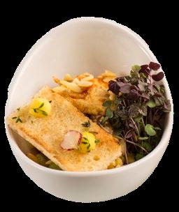 Transparency and accountability are central to our operations. We use MenuGuide, an advanced real-time allergen tracking system, to ensure accurate labelling of every dish, allowing guests to make informed choices and dine safely. Additionally, Food Steps, our traceability platform, maps the full journey of every ingredient from source to service, including carbon footprint indicators for each dish. This allows clients and guests to understand the environmental impact of their choices and explore lowerimpact options. For clients seeking detailed reporting for CSR or ESG goals, we can provide verified data on the traceability and sustainability of their event menu.