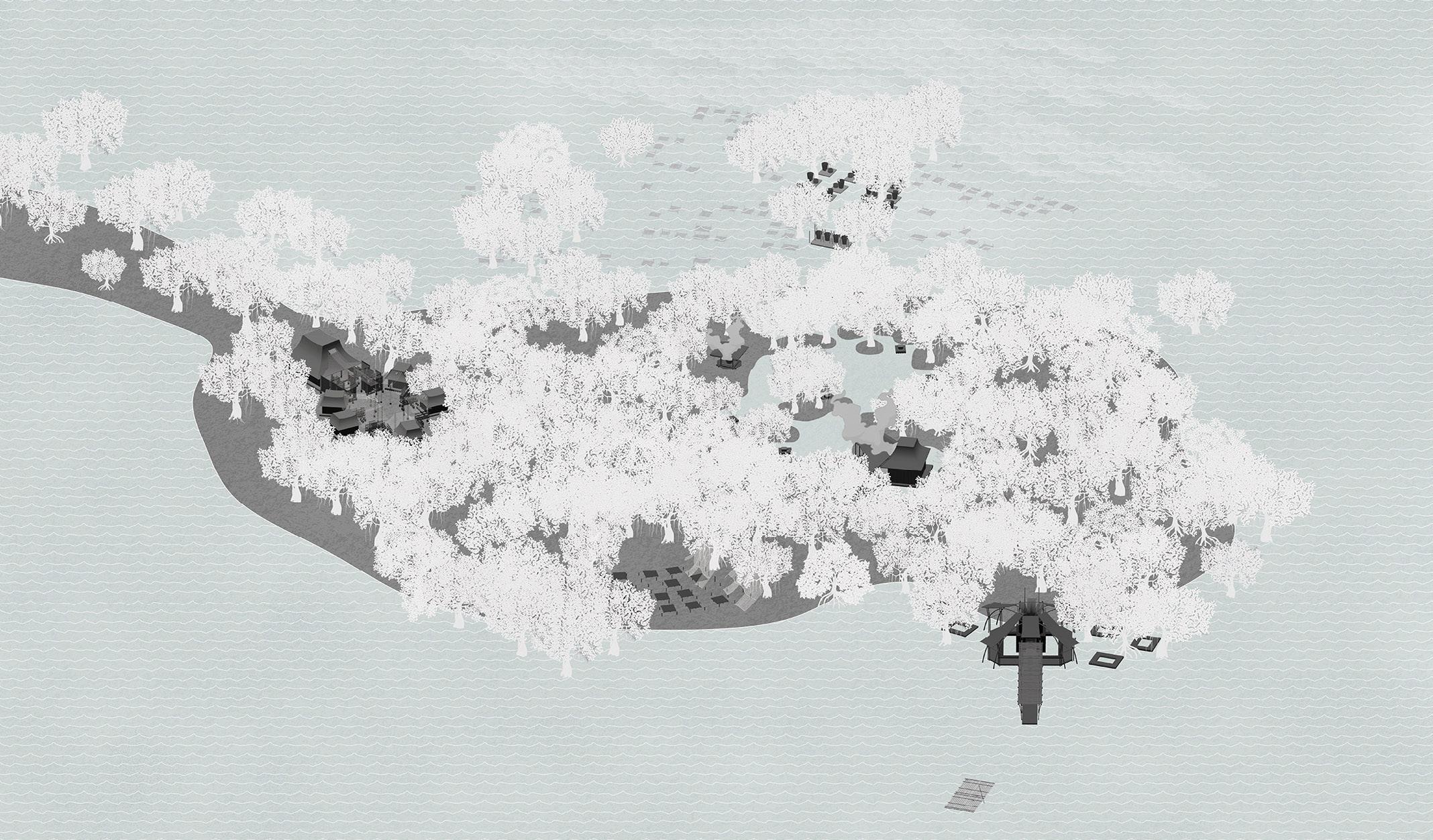 With the development of a sensorial ecotourist resort, where visitors can experience the process of making the salt, the Manongas family can efficiently produce it, and teach new generations of salt makers, the project is conceived as their last resort to keep the tradition alive. Through a re-interpretation of the process of making Asin Tibuok, the resort serves to catalyze an irrepressible system, interrelating environmental change, inter-tidal ecologies, local livelihoods, recreation, tourists, and cultural pedagogies.