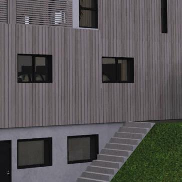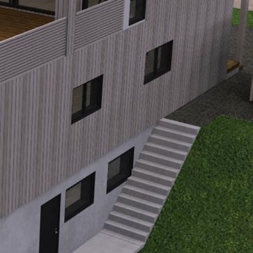 Terrassebord leveres trykkimpregnert furu, ubehandlet. 28x120mm. Rekkverk som vist på fasadetegning Ingen terrasse på bakkenivå er inkludert i leveranse. Utvendig trapp ned til kjeller lages treverk.