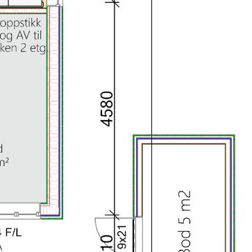 Veggene isoleres med minimum 5 cm, kles med gips og males. Alle malte flater innvendig farge NCS S0502-Y