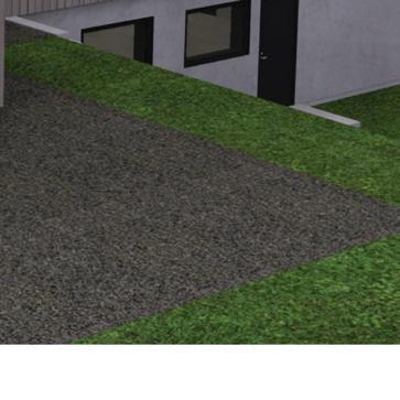Utearealer leveres med ferdig isådd plen og opp gruset gårdsplass. Ved inngangsparti leveres det en støpt plate med ru overflate.