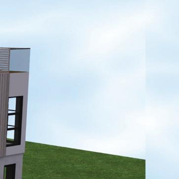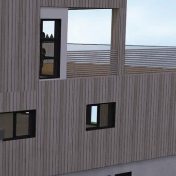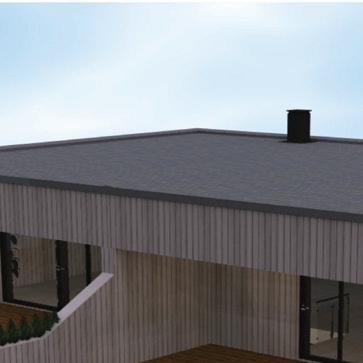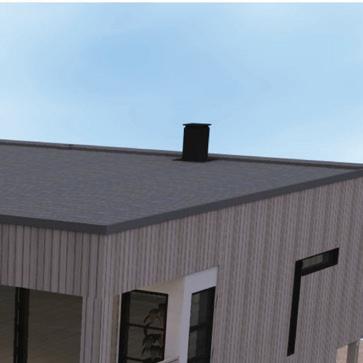 Fasade med murpuss evt fasadeplater (bestemmes av utbygger) og stående/liggende bordkledning med 1 mellomstrøk med synlig innfesting og ubehandlet endeved. Tak tekkes med takpapp og alle takrenner nedløp og beslag leveres farge svart.