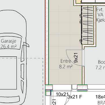Beskrivelsen er veiledende og leverandør av bolig har tatt forbehold om å kunne foreta endringer på konstruksjon og eventuelt materialer – så lenge dette ikke medfører endringer i kvalitet og funksjon Det kan forekomme avvik mellom byggemeldingstegninger og kontrakt/endelige produksjonstegninger. Kjøkken, eller andre installasjoner, må ikke bestilles etter mål fra byggemeldingstegninger. Frist for endringer leveransen settes til 21 dager etter oppstartsmøte endringer.