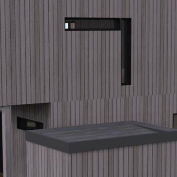 Vinduer leveres i farge sort med trelags energiglass henhold til teknisk forskrift. Sort ytterdør tre som vist på fasadetegning.