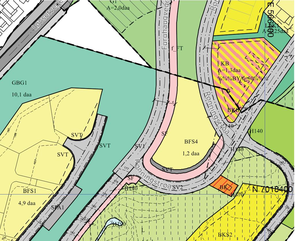 Kartutsnitt med reguleringsbestemmelser 27.03.23/12.05.23