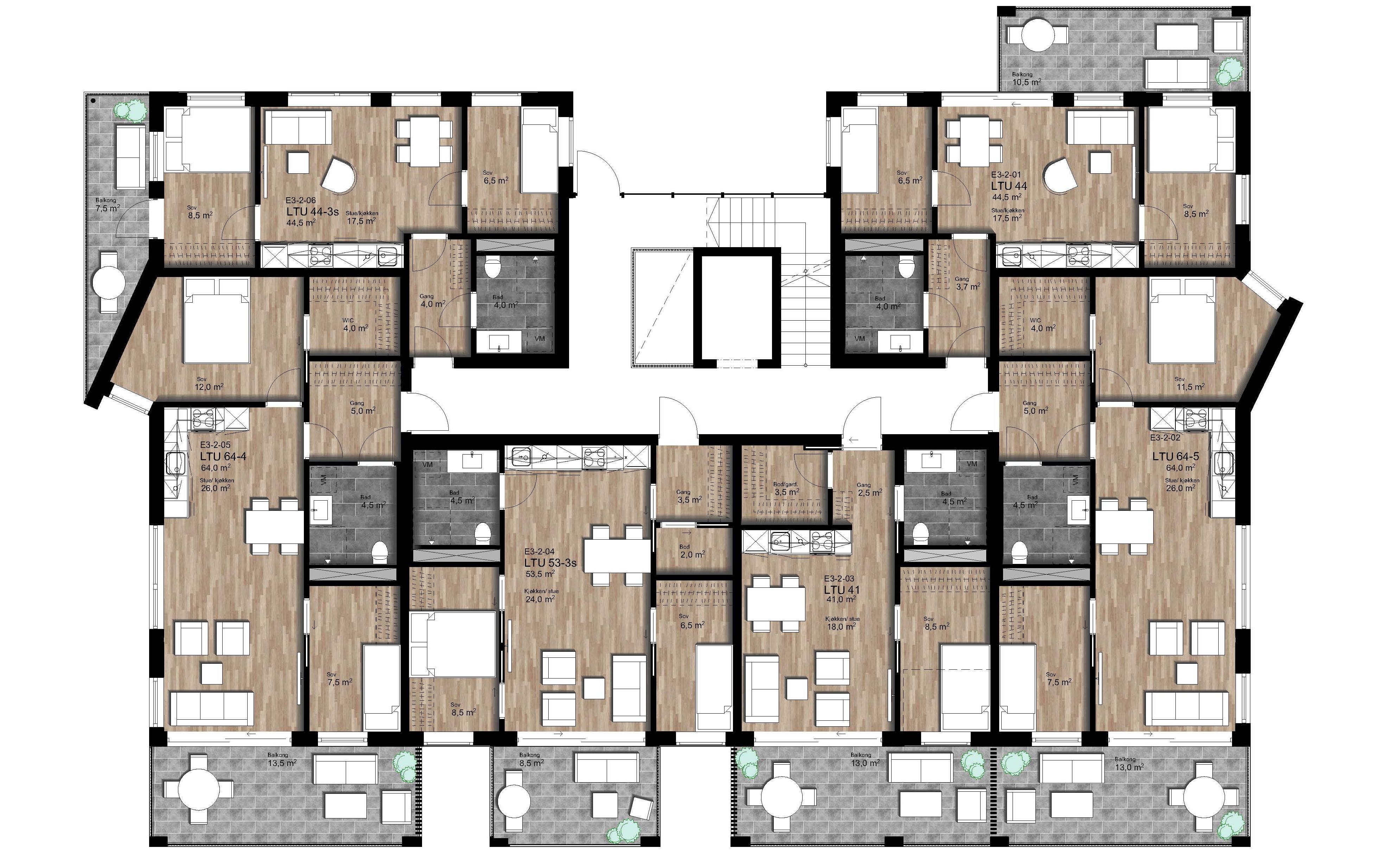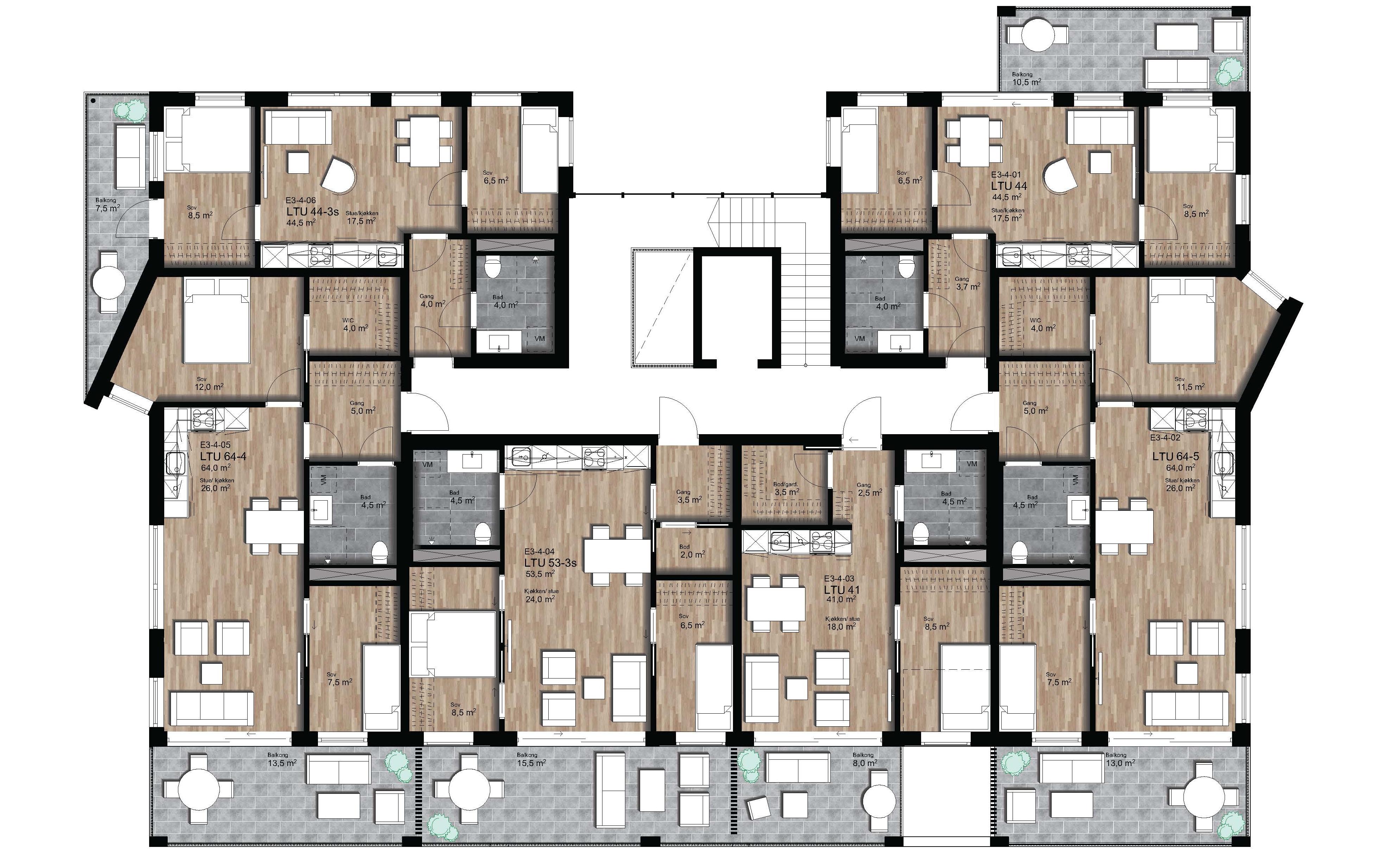 I hver etasje finner du den samme kvaliteten og komforten du fortjener i ditt nye hjem. Hver leilighet har sin egen balkong, og heisen bringer deg rett til døren. Finn boligroen her.